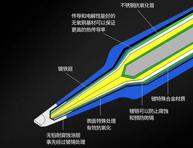 例如936焊臺上用的烙鐵頭,都是由合金材料做成,烙鐵頭表面也進(jìn)行特殊處理,也進(jìn)行了鍍鉻處理,這些都可以很大程度上避免烙鐵頭氧化。